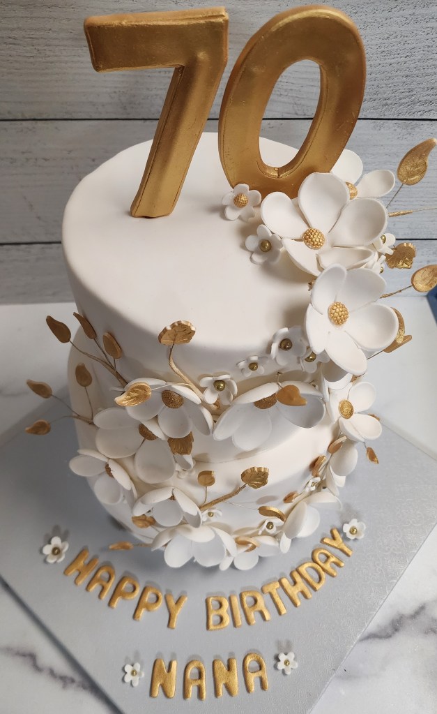 I was recently made this cake for a special Nana on her 70th birthday. This design really is elegant.